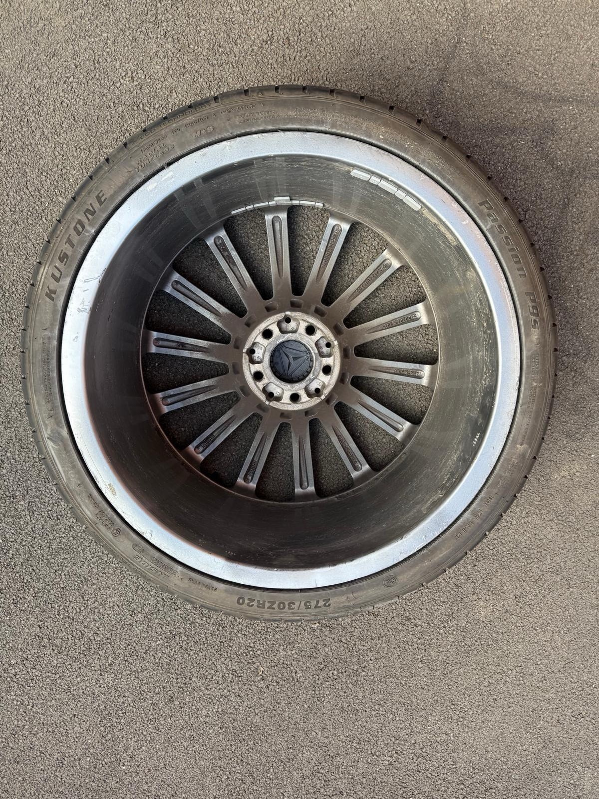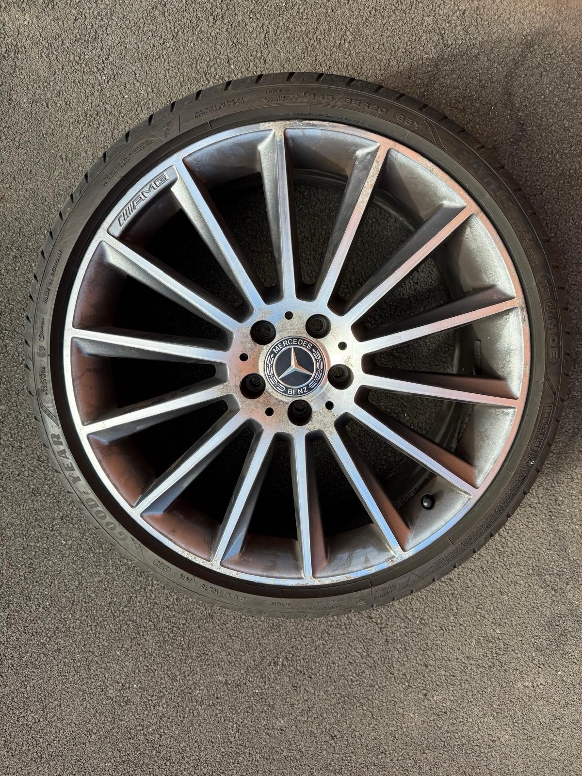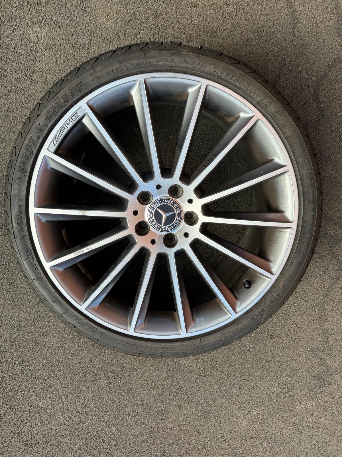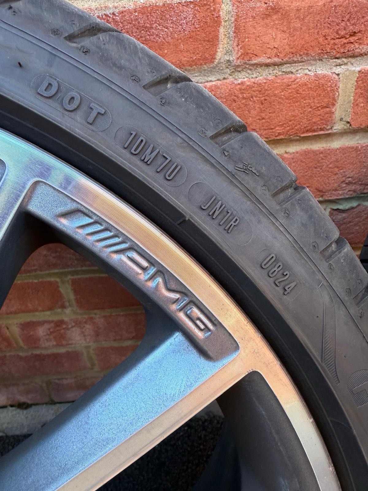 Original turbine AMG Mercedes 20 inch; Front – Good Year – 245/35R20 95Y – 2024 – 6mm Rear – Budget Tyres (Kustone – 8mm and Full run – 6mm) 275/30R20 – one at 2023 and other at 2024