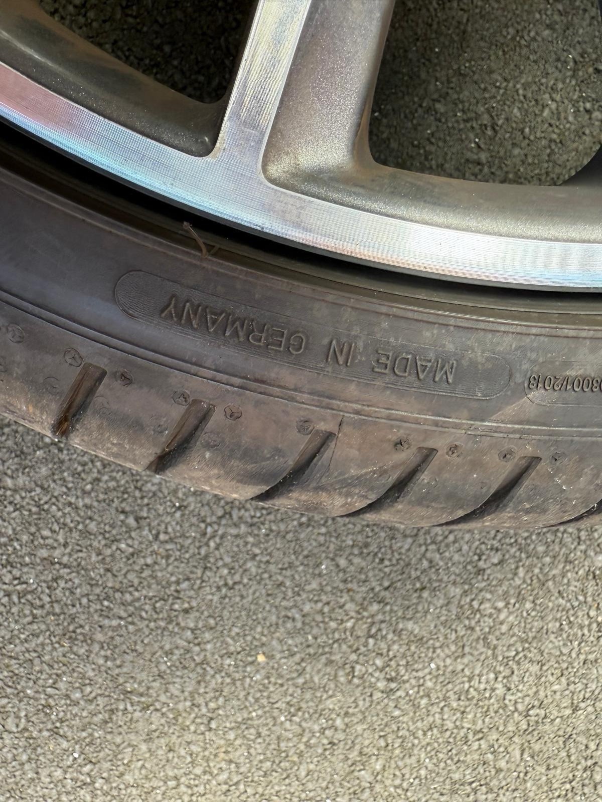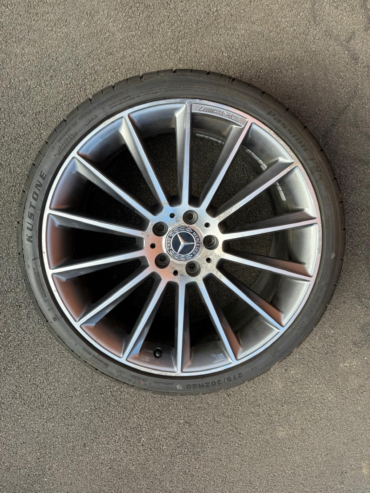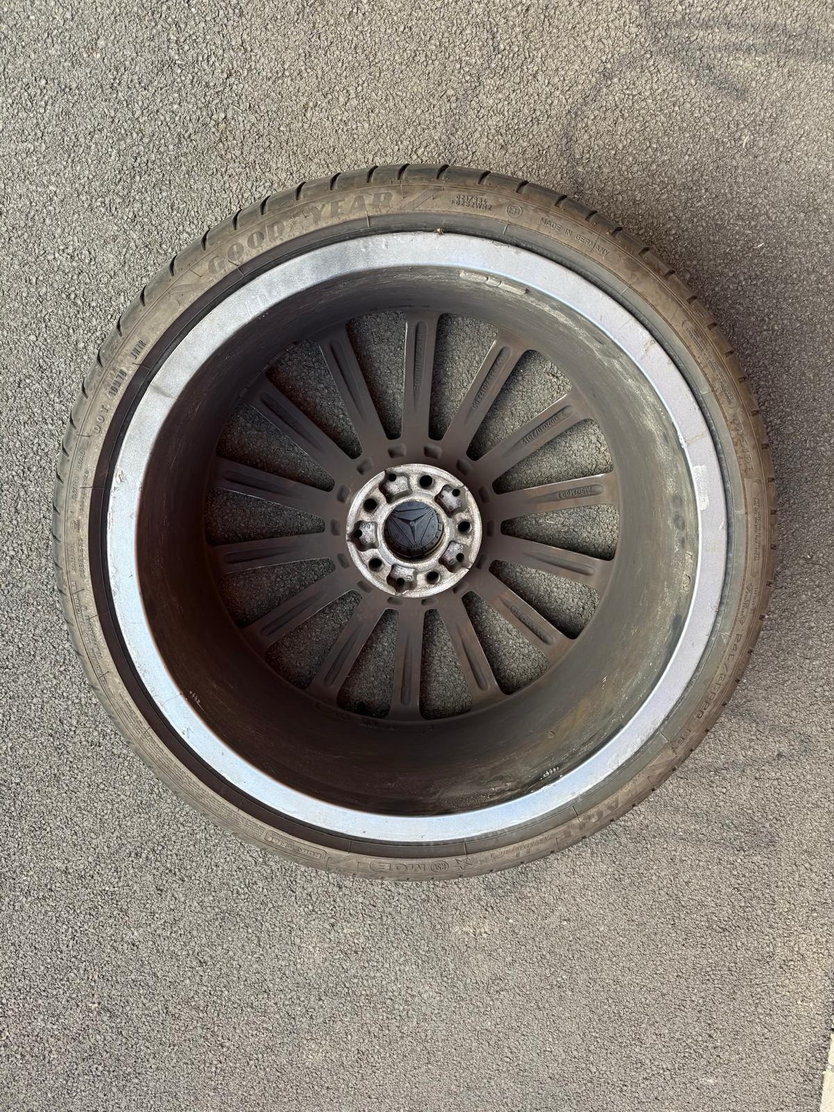 Original turbine AMG Mercedes 20 inch; Front – Good Year – 245/35R20 95Y – 2024 – 6mm Rear – Budget Tyres (Kustone – 8mm and Full run – 6mm) 275/30R20 – one at 2023 and other at 2024